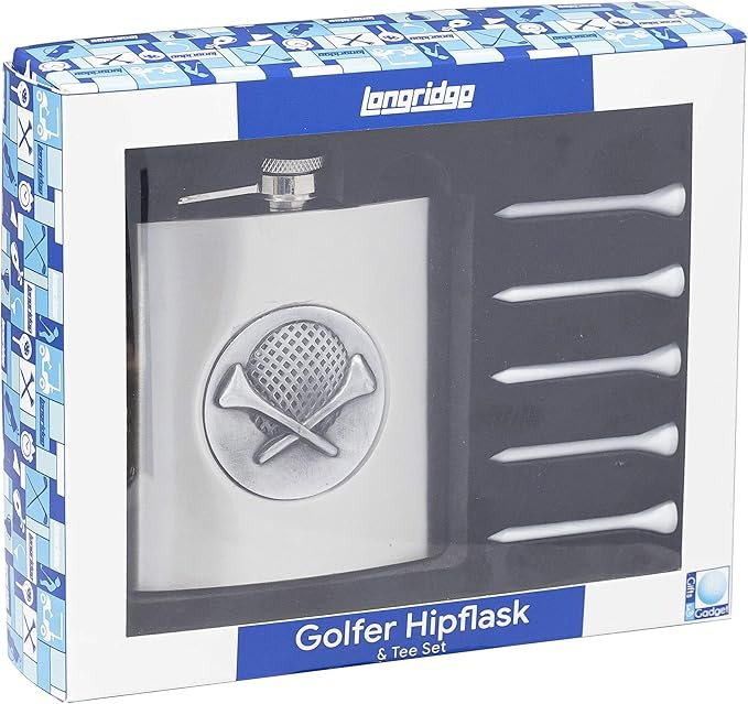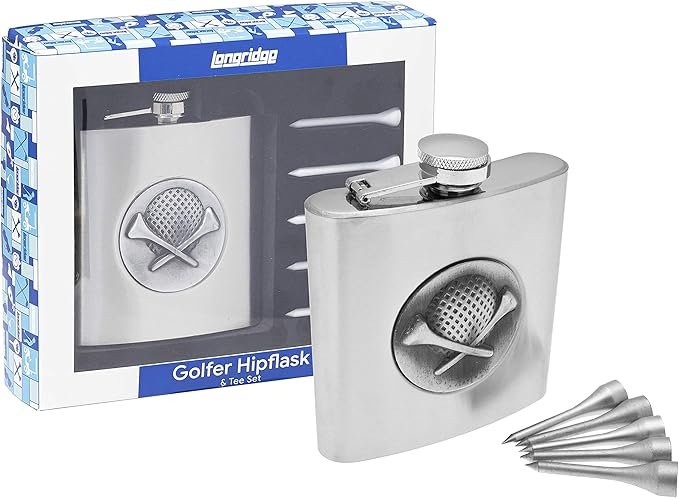 Stilingas ir praktiškas kišeninės gertuvės rinkinys – puiki dovana kiekvienam golfo mėgėjui. Tradicinės formos 170 ml talpos nerūdijančio plieno gertuvė turi saugią, lankstomą dangtelio užsukimo sistemą, kuri apsaugo nuo skysčio išsiliejimo ar dangtelio pametimo.