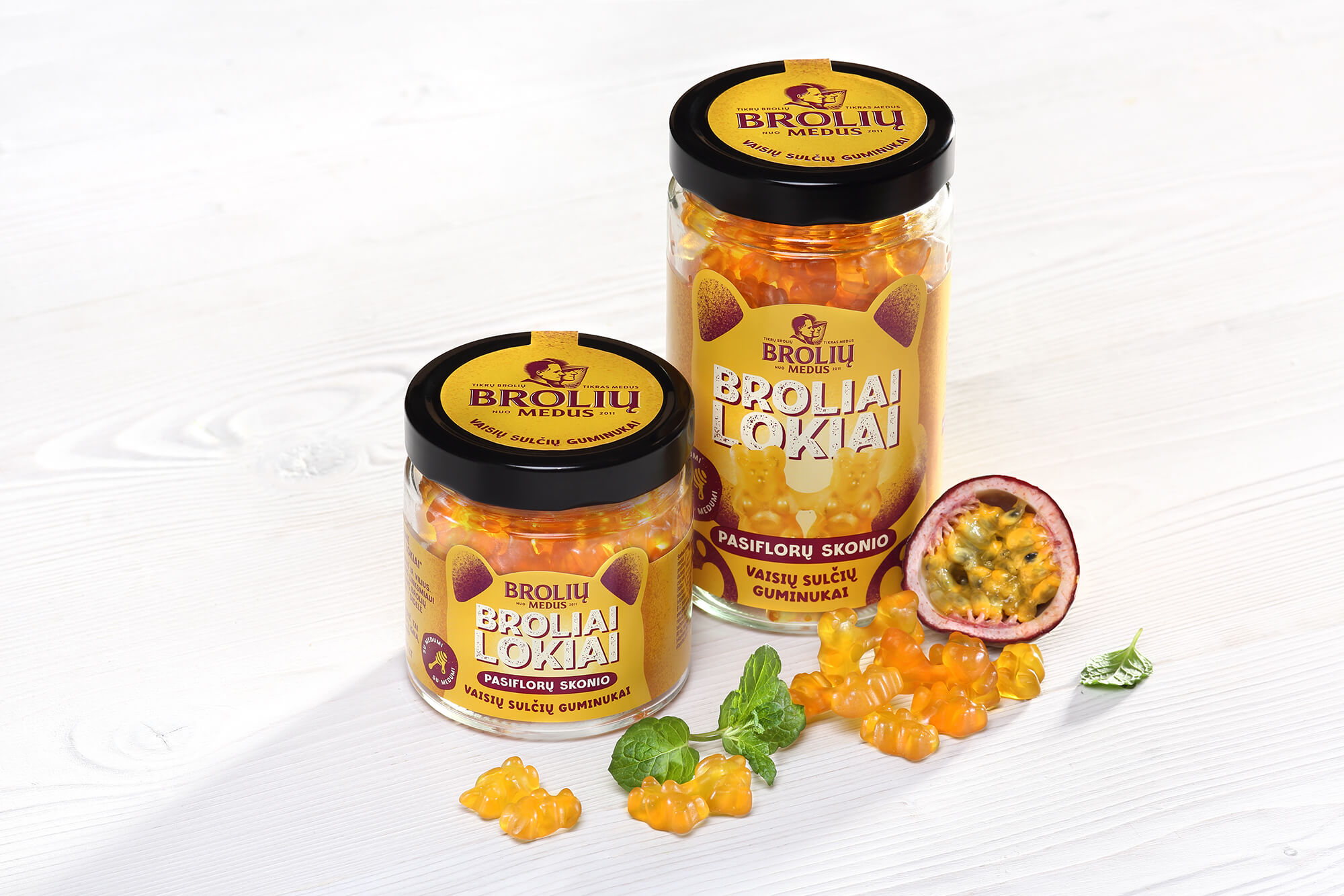 Pasiflorų, obuolių ir aviečių skonio guminukų „Brolių lokių“ su medumi miksas – tai svajonių išsipildymas, trokštamas skanėstas ir tobula dovana viename. Lietuviškų spalvų – geltonos, žalios ir raudonos – derinys kiekvieno širdyje suskambės aukščiausiomis natomis.